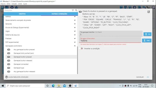 Como usar um controle de vídeo game na Gdevelop