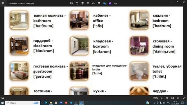 Английский язык Названия комнат в доме