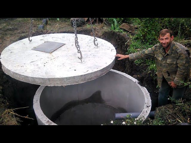 Как мы делаем сливные ямы!!! Септик. Яма для приёма сточных вод. Бетонные кольца.JCB. CAT. VOLVO.