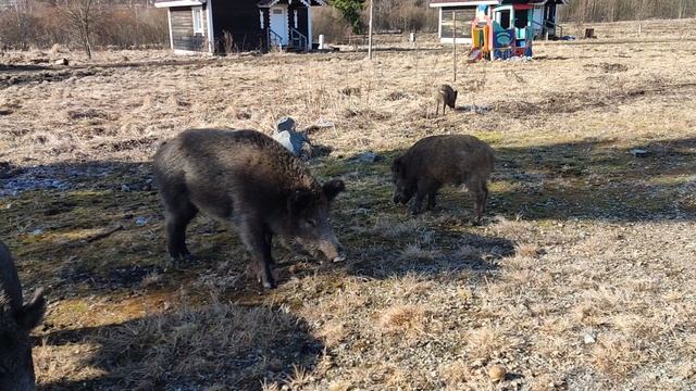 Кормим диких кабанов в лесах Карелии