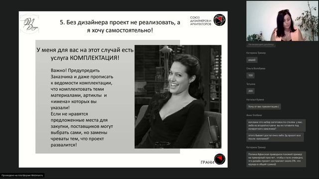 Ольга Надич Практикующий дизайнер интерьеров Специалист с высшим техническим образованием, диплом о переквалификации по профессии дизайнер интерьеров Более 10 лет разрабатывает и реализует свои проекты Эксперт по колористическим решениям Амбассадор закрытого бизнесс-клуба для дизайнеров и архитекторов "Грани" Постоянная участница конференций и выставок, посвященных дизайну интерьера Хотите быть в курсе? Следите за анонсами тренингов, вебинаров и конференций со всей России в нашем telegram-канале: https://t.me/union_da Подписывайтесь на Инстаграм Союза Дизайнеров и Архитекторов: https://instagram.com/union_da/ Инстаграм бизнес-клуба для дизайнеров ГРАНИ: https://www.instagram.com/bk_grani/ Следите за новостями в группе в Вконтакте: https://vk.com/unionda Добавляйтесь в facebook: https://www.facebook.com/unionda1/
