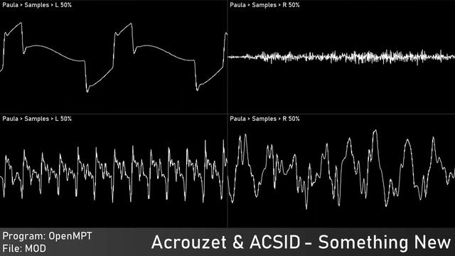 Authors: Aidan Crouzet-Pascal (Acrouzet) & ACSID Of: ? Links: Acrouzet - Bandcamp - https://acrouzet.bandcamp.com/ Year: 2020 Program: OpenMPT Platform: Windows for Commodore Amiga Played with: MOS 8364 - Paula Stereo Separation: 50% Source type: Traditional module - mod Compatibility: ProTracker+ Taken from: Discord DL because original link is not active: https://cdn.discordapp.com/attachments/1070858825160216626/1071475967995940864/Something_New.mod Rendered: OpenMPT: Audio export Audacity: Edited audio export Corrscope: Video export VideoPad: Edited video export Samplr