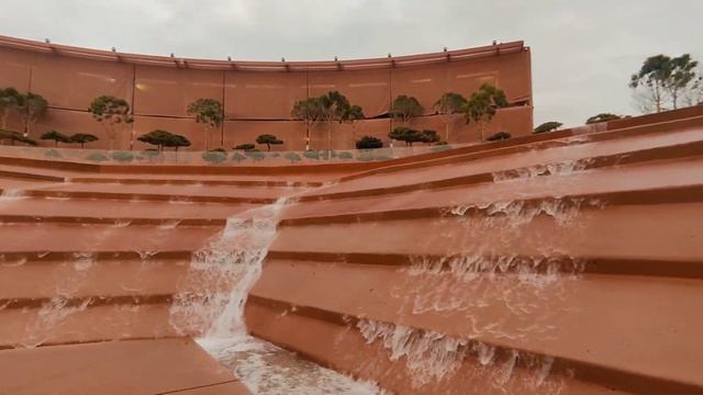 Каскадные водопады в Атриуме парка Галицкого в Краснодаре, декабрь 2025