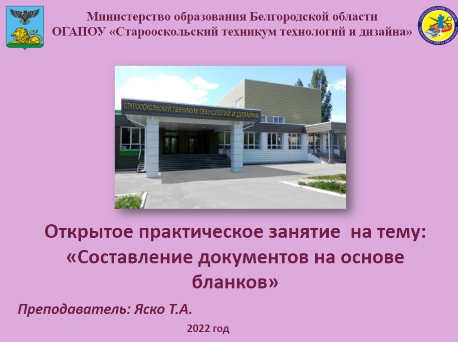 Открытое практическое занятие на тему: "Составление документов на основе бланков"