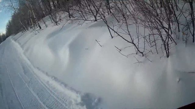 Работа ножа установленного на снегоход по свежевыпавшему наметённому Снегу на лыжной трассе.