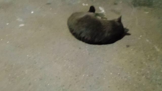 Кошка балдеет на пыльном полу