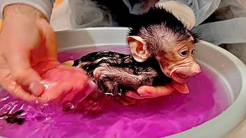 Доктор Василий купает, сушит феном и обрабатывает маленькую Анфису, а я переживаю что ей холодно)))