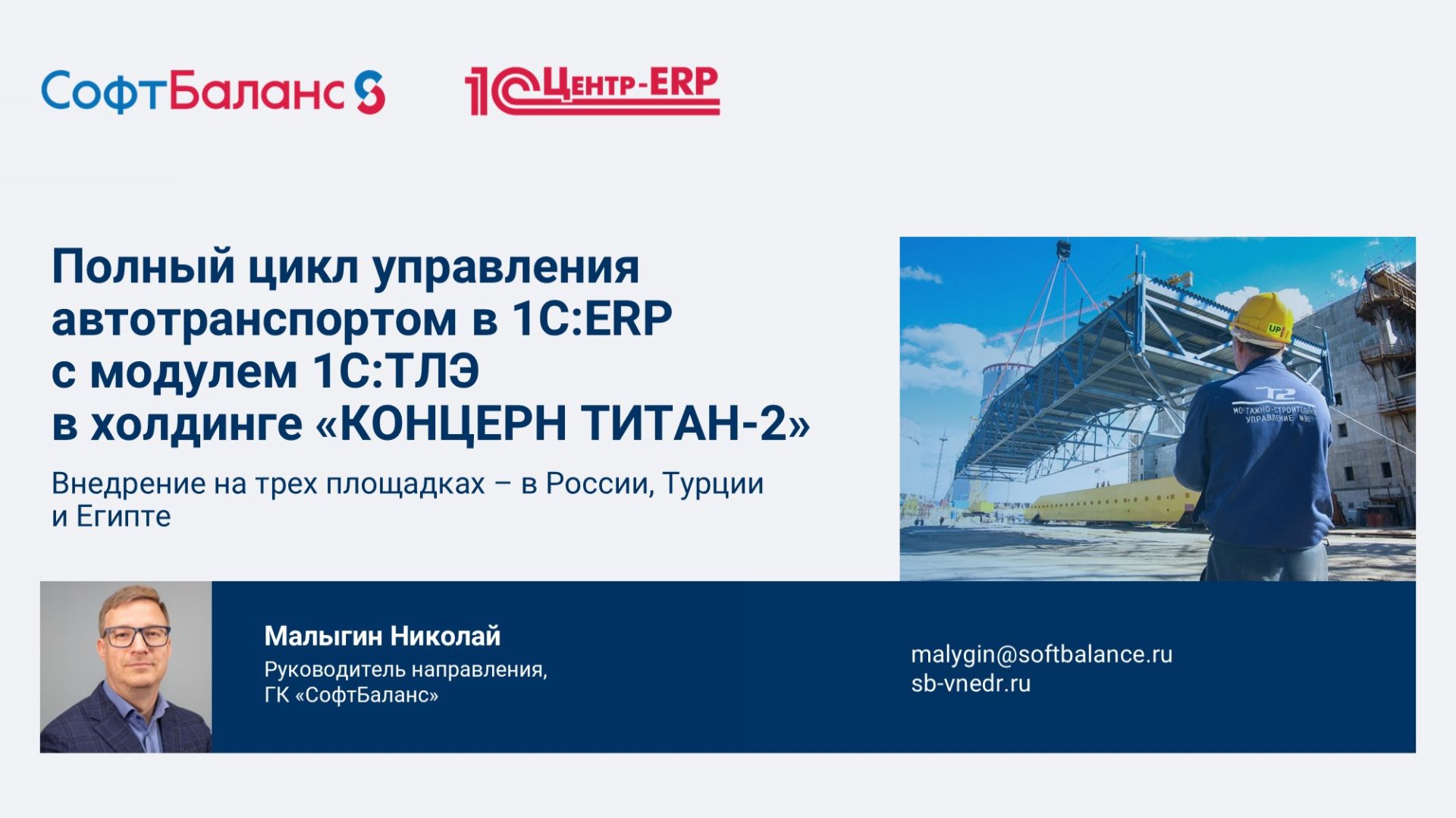 ГК "СофтБаланс" https://sb-vnedr.ru/ Телеграм-канал: https://t.me/sb_vnedr Полный цикл управления автотранспортом в 1С:ERP с модулем 1С:ТЛЭ на трех площадках АО "КОНЦЕРН ТИТАН-2" – в России, Турции и Египте Внедрение 1С ERP https://sb-vnedr.ru/service/erp.php 1С ERP https://sb-vnedr.ru/programm/1c-proizvodstvo/1c-erp/