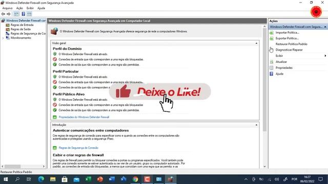 Neste tutorial vou ensinar para vôce, como configurar o Firewall do Windows, configurar permissão nos aplicativos, e nas portas dos protocolos de redes. Firewall é um despositivo de redes (normalmente software) que tem a função de controlar tudo que entra e sai no teu computador. Link do canal https://www.youtube.com/channel/UCy5gh87C8NNiDTIdxhqFbSw Siga-me no instagram: @joseilidiobarros
