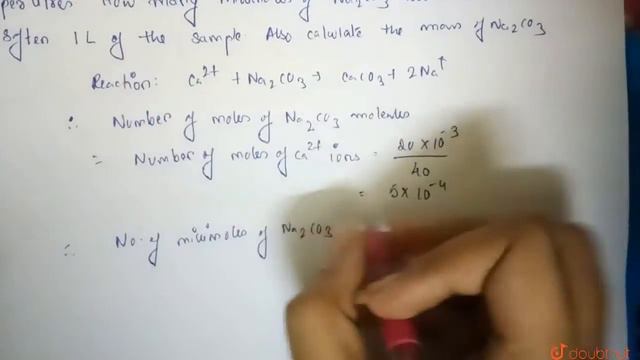 A sample of hard water contains 20 mg of Ca^(2+) ions per litre. How many millimoles of Na_(2)CO...