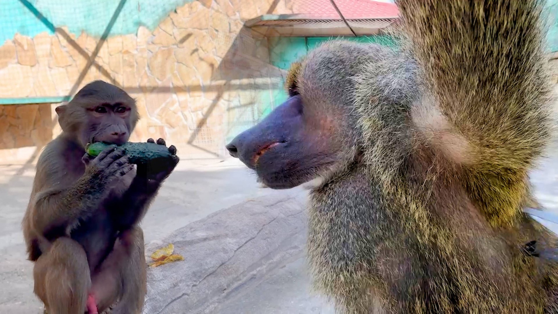Жадная Настя забрала огурец у Степки. Рокки аж оторопел и подставил бок под палку-подавалку!