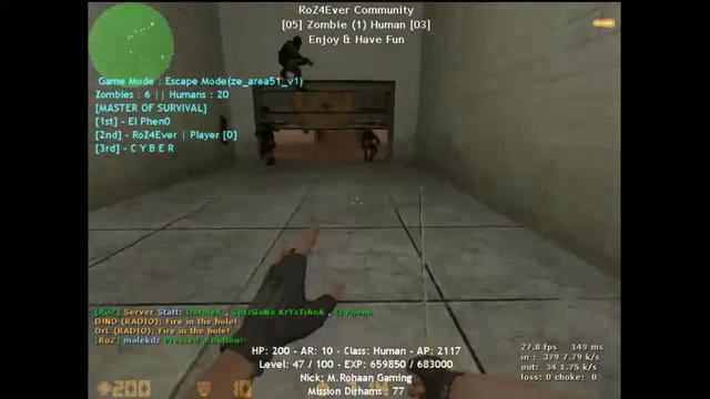 Hello Gyus Today We Play RoZ4Ever ZombieEscape If u Enjoy The Video so like and subscribe my channel Discord Server:- https://discord.gg/C5tyKXMX Facebook page:- https://www.facebook.com/MRohaan-Gami... ================================= Roz4ever Zombie Escape 2021 Always 32/32 Admin Active 24/7 Server IP -: 109.230.236.111:27015