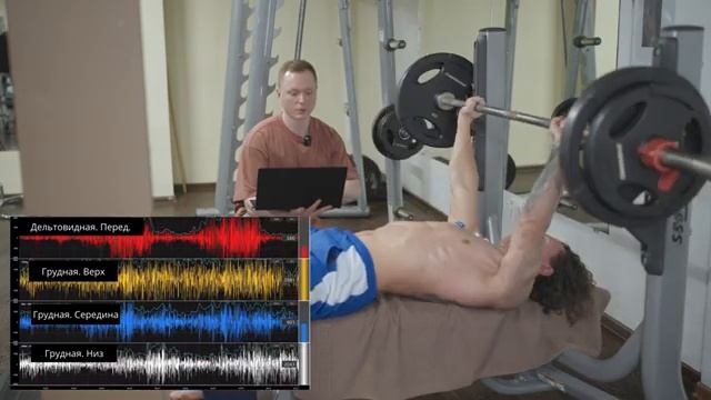 Жим штанги лежа с мостом и без. Миограф