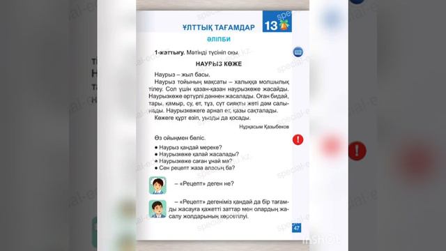 сауат ашу 1 сынып 163 164 сабақ Ұлттық тағамдар Әліпби