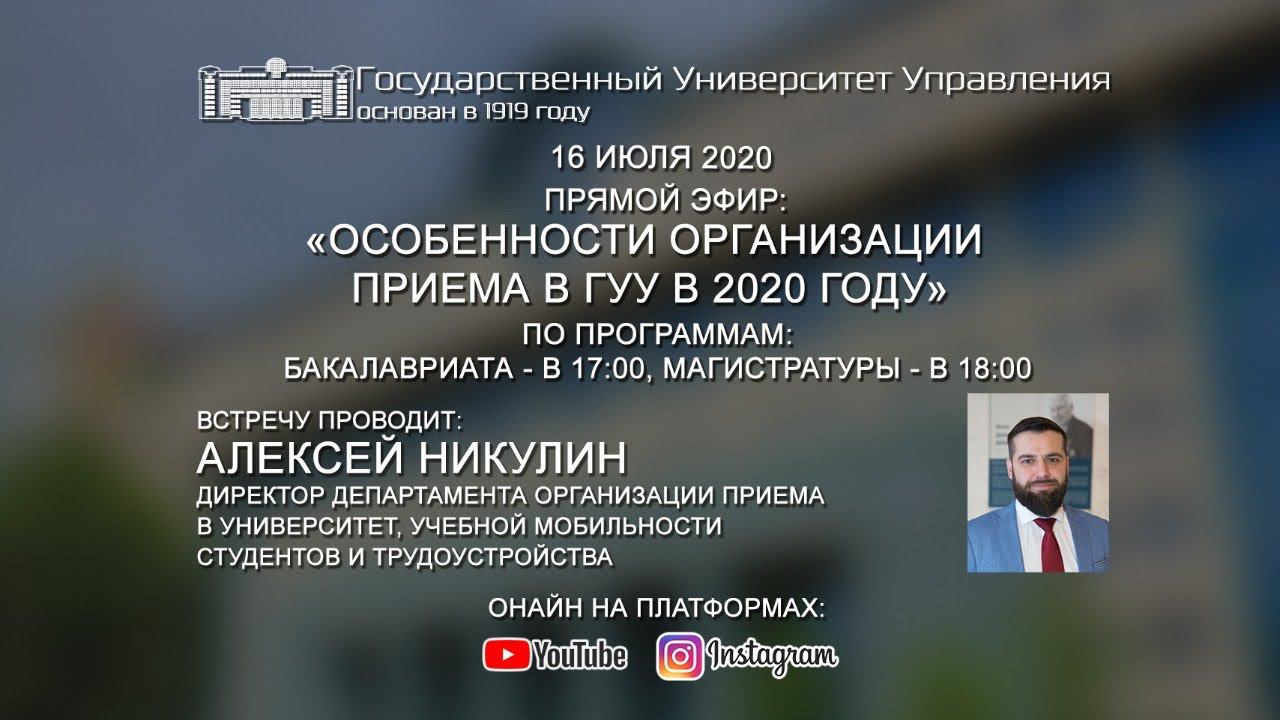 Особенности организации приема в ГУУ в 2020 году.
