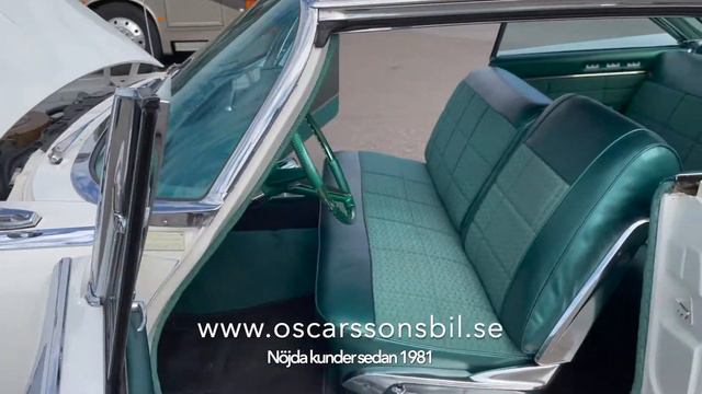 En mycket fin och tilltalande sportcoupe från 1961 i en mycket elegant färgkombination! Bilen är vit med grön inredning, gröntonade rutor samt grönt tak, riktigt snyggt! Bilen kom från Californien redan 2001 som ett mycket friskt & fint objekt, och har sedan fått en riktigt fin renovering här i Sverige, påkostad mycket arbete & pengar! Utrustad med 413 och tryckknappsautomat, servostyrning, servobromsar, elsäte, elhissar runtom, tonade rutor, AC, original radio, fina ekerfälgar med Whitewalldäck m.m.. En ovanlig bil i riktigt fint skick!! Bör ses! För mer info ring 0530-40400 Oscarssons Bil AB etablerades 1981 utav Jan Oscarsson, och drivs fortfarande ca 40 år senare utav Jan och hans broder Thomas Oscarsson med personal, vi har sålt ca 12.000 fordon sedan starten och har högsta kreditvärdighet, så ni kan med förtroende vända er till oss när ni ska göra affär! VI KÖPER-BYTER-SÄLJER & FINANSIERAR! FINANSIERING UPP TILL 84 MÅNADER! Vi säljer nya Ford transportbilar, nyare begagnade bilar samt fina USA-bilar från 1950-1970. ! De flesta av våra USA-bilar som är klara för försäljning kan ni även se en film på om ni går in på YOUTUBE och söker Oscarssons Bil. Välkomna till oss i Mellerud som är beläget vid Vänern, mitt emellan Karlstad & Göteborg! 0530-40400, 40401 eller 40402. www.oscarssonsbil.se Se mer foto & info på vår hemsida: oscarssonsbil.se eller sök oscarssons bil på Youtube för att se video på den här och övriga USA-bilar som är till salu!