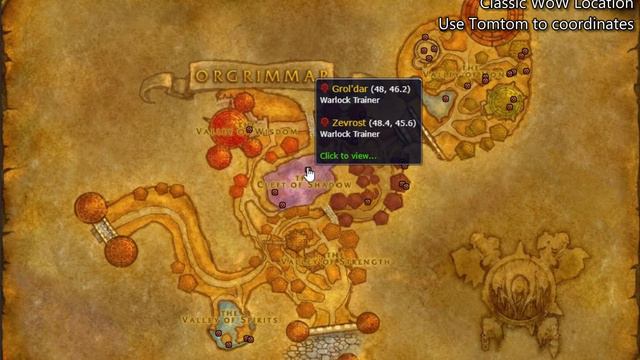 This video shows Orgrimmar Warlock Trainer Location Classic WoW. Thanks for watching, like and subscribe for more videos. NPC subtitle: red= horde, blue=alliance, yellow=neutral.