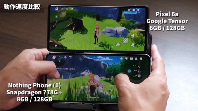 https://www.sin-space.com/entry/nothingphone-1-review https://www.sin-space.com/entry/pixel-6a-review Nothing Phone (1)とPixel 6aを比較してみました。5〜6万円で買えるミドルスマホですが、色々と比較してみたのでどっちにしようか迷ってる方は参考にしてみてください。 ■ Nothing Phone(1) ・Amazon → https://amzn.to/3K99OTV ・楽天市場 → https://a.r10.to/hke80g ・OCNモバイルONE → https://t.felmat.net/fmcl?ak=Q4625F.1.E836291.V86862N ■Pixel 6a スマホ乗り換え.com(乗り換えならキャッシュバックも):https://mobile-norikae.com/?acode=YvMN91BgMa Amazon:https://amzn.to/3pqMeZz 楽天市場:https://a.r10.to/hMoEn3 イオシス:https://px.a8.net/svt/ejp?a8mat=1ZZS8H+DRYBEQ+ZFU+BW0YB&a8ejpredirect=https%3A%2F%2Fiosys.co.jp%2Fitems%2Fsmartphone%2Fpixel ■目次 0:00:Nothing Phone (1)とPixel 6a 0:55:本体デザインと本体サイズ 4:09:防水性能、スピーカー、充電ポートなど 6:26:ディスプレイの違いを比較 7:54:生体認証の違いを比較 8:42:SoCの性能の違いを比較 10:49:動作速度比較(ブラウザ、Twitter) 12:53:動作速度比較(原神) 15:14:電池持ちの違いを比較 15:58:カメラのスペック比較 17:01:カメラの画質を比較(明所) 19:34:カメラの画質を比較(暗所) 22:46:動画撮影比較(4K) 23:45:Nothing Phone (1)のメリット・デメリット 26:52:Pixel 6aのメリット・デメリット 28:06:どっちがいい? ■シンスペースとは ガジェットが大好きなカズヤがお送りしているレビューチャンネルです。YouTubeだけでなくブログでもレビューをしております。基本的にAppleとSONYが大好物です。最先端のものも大好物なためいろんなAndroidスマホもかじっております。チャンネル登録よろしくお願いします!! → https://www.youtube.com/channel/UCtWfZ_xPmCjm1vdbWYeHmmQ?sub_confirmation=1 #nothingphone1 #pixel6a #レビュー #比較 #シンスペース ブログ:https://www.sin-space.com Twitter:https://twitter.com/Logkazu Facebook:https://www.facebook.com/Sin-Space-144743009029343/ ※製品リンクのURLはAmazonアソシエイトのリンク、各種サービスのアフィリエイトリンクを使用している場合がございます。