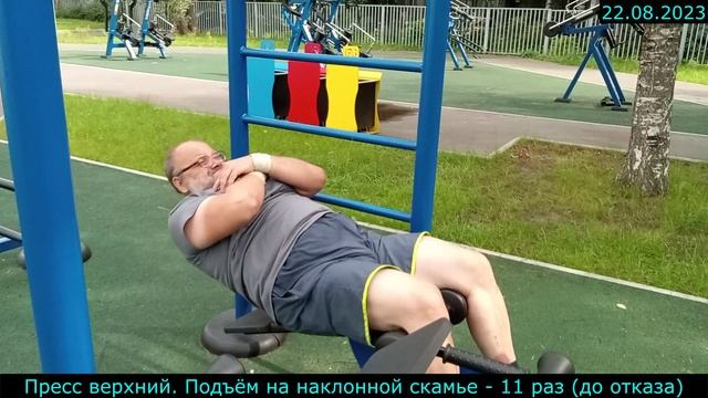 22.08.2023 - Пресс верхний. Подъём на наклонной скамье - 11 раз (до отказа)