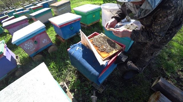 ВЫВЕЛИСЬ ПЕРВЫЕ МАТКИ В СЕМЬЕ ВОСПИТАТЕЛЬНИЦЕ, МЕЧЕНИЕ МАТОК И ДАЮ ПЧЕЛУ С КОРМОМ..mp4