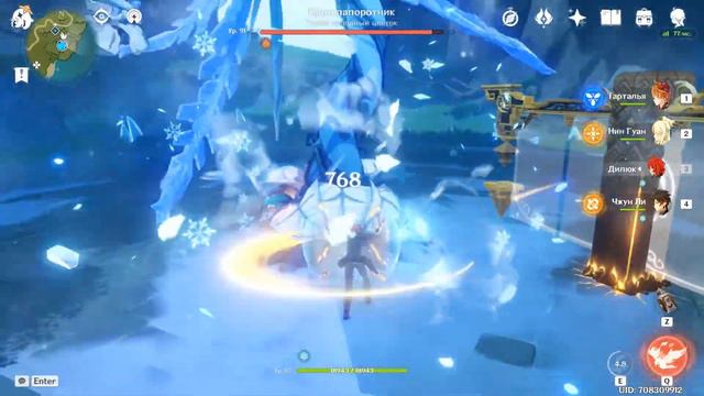genshin impact Делюк Нин Гуан Джун Ли Тарталья vs Ледяной цветок