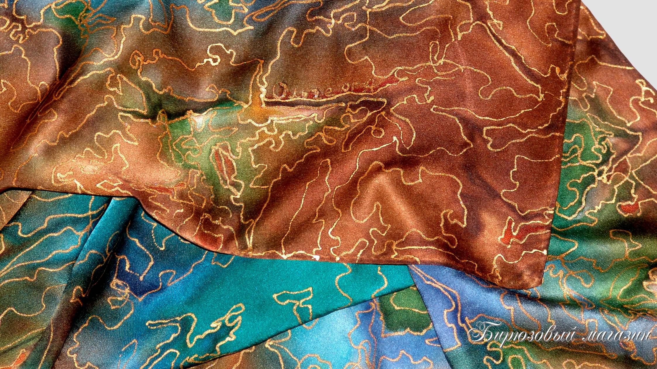 "Бирюза и шоколад" шелковый платок батик ручная роспись