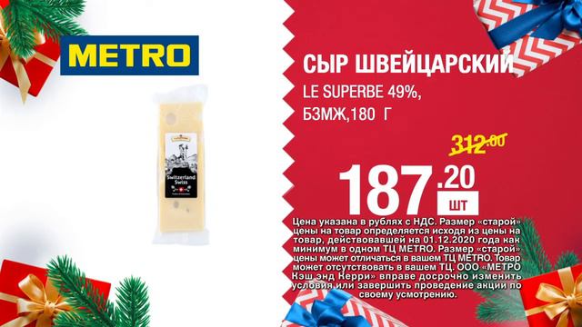Встречайте Новый год качественно! C 3 по 6 декабря 2020 года все сыры из Швейцарии со скидкой 40%: https://bit.ly/3luuAj2 Сыр Швейцарский Le Superbe 49%, БЗМЖ 180 г. всего за 187,20 рублей. Оформить Карту Гостя METRO: https://bit.ly/3lkoZNz