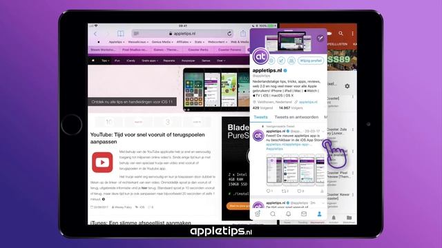 Slide Over en Split View activeren op een iPad. Bekijk het volledige artikel op: https://appletips.nl/ios-11-slide-over How to use Slide Over and Split View on an iPad with iOS 11, you can see it in this tutorial video. ★ AT APP ★ Download de gratis at app en blijf op de hoogte van de laatste tips, nieuws, handleidingen, video's en meer ▸ https://www.appletips.nl/app ★ LINKS ★ Website ▸ https://www.appletips.nl Twitter ▸ http://twitter.com/appletips Instagram ▸ https://www.instagram.com/appletips.nl/ Facebook ▸ http://www.facebook.com/appletips How To video's ▸ https://www.youtube.com/playlist?list=PLxY7CcZF2UMdo1G7b_g0pbrKA0eE6_Blv Mini Screencasts ▸ https://www.youtube.com/playlist?list=PLxY7CcZF2UMemvEDMcUfm8uOZXFbxtmoH ★ STEUN APPLETIPS ★ Steun appletips zodat onze website kan blijven bestaan, meer info ➡️ https://www.appletips.nl/steun-appletips/ ★ AT GENIUS ★ Vragen of problemen met je iPhone, iPad, Mac of andere apparaten en diensten? Stel ze op http://genius.appletips.nl/