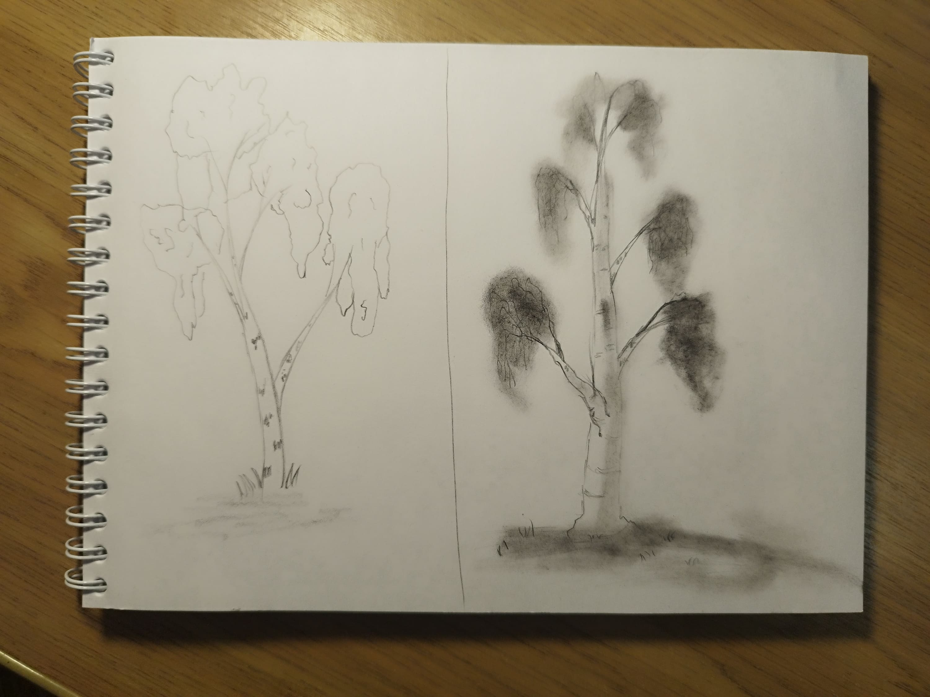 Как легко нарисовать берёзу простым карандашом поэтапно