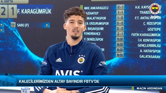 Fenerbahçe TV - Galibiyetle ayrıldığımız Karagümrük maçının ardından canlı yayınımızın konuğu başarılı kalecimiz Altay Bayındır. FBTV YouTube programlarını kaçırmamak için abone ol: http://bit.ly/2JjqVnU FBTV Sosyal Medya Hesapları: Instagram ► http://bit.ly/2oLKcHB Twitter ► http://bit.ly/2IV6e1j Fenerbahçe YouTube ► http://bit.ly/2HUdAT7 Fenerbahçe TV'nin YouTube sayfasına hoş geldiniz. Faaliyet gösterdiğimiz tüm branşlarda sizler için hazırlanan ve yayınlanan FBTV programlarını kanalımızda bulabilirsiniz. Siz de abone olarak Fenerbahçe’mize destek olabilirsiniz! ** Fenerbahçe TV Resmi YouTube Sayfasıdır The Official YouTube Channel of Fenerbahce TV #Fenerbahçe #FBTV #AltayBayındır