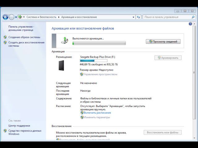Резервное копирование в Windows 7