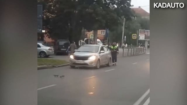 Сотрудники ГИБДД толкают машину. Калининград.