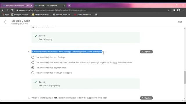 This video contains my recorded responses in the course "Java for Android" by Vanderbilt University published in the coursera. All answers are correct. And if you are having difficulty in any of the quizzes, here is the solution. Subscribe for more..........!!!
