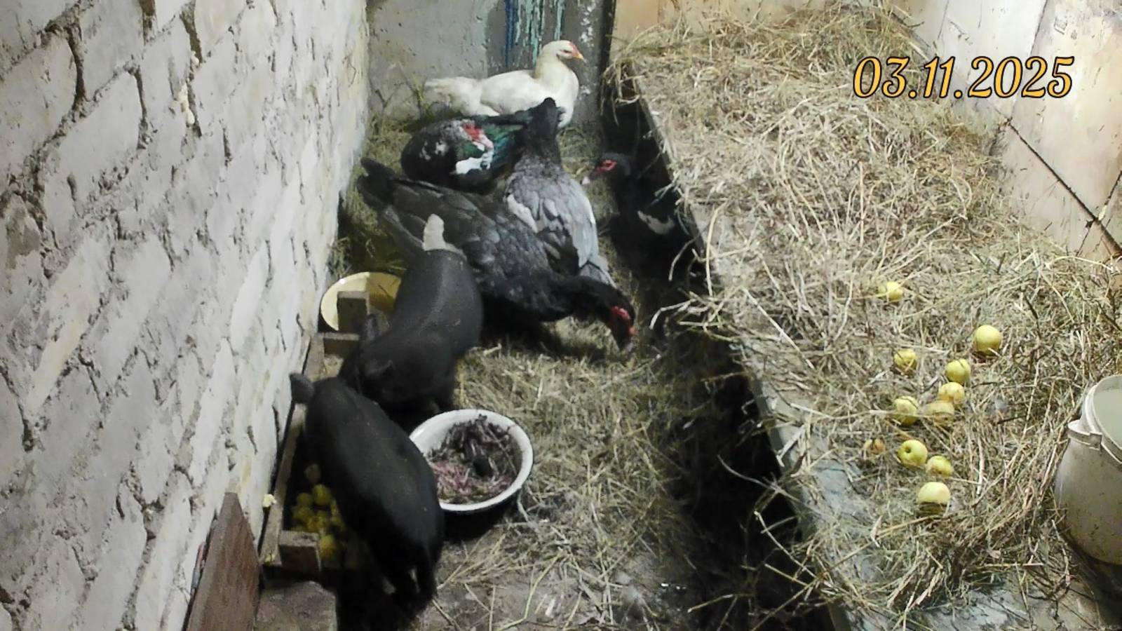 В подвале из одной комнаты перенёс ёмкость из пвх в соседнюю, в которой планирую выращивать форель, осетров и пр, а эту комнату подготовил для скотины. 03.11.2025г. заселил в подвал пару вислобрюхих, вьетнамских свинок, индоуток и курицу.