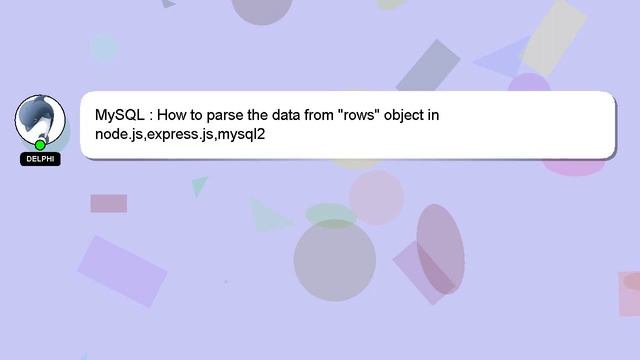 MySQL : How to parse the data from "rows" object in node.js,express.js,mysql2 To Access My Live Chat Page, On Google, Search for "hows tech developer connect" I promised to reveal a secret feature to you, and now it's time to share it. This is a YouTube's feature which works on Desktop. First, Make sure the video is currently in playing mode. After that, type the word 'awesome' on your keyboard. You will see a flashing rainbow instead of a regular progress bar on YouTube. Let me give you a brief introduction of who I am, Nice to meet you, I am Delphi. I can provide you with assistance to help you answer your questions. MySQL : How to parse the data from "rows" object in node.js,express.js,mysql2 I welcome your comments and chats if you have more detailed queries. Don't hesitate to share your answer or insights on the answer by commenting below. Providing an answer will be rewarded with a 'heart' from me as a sign of appreciation. object How parse data node.js,express.js,mysql2 the from to "rows" : MySQL in