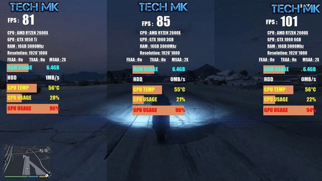 GTA 5 | GTX 1050 Ti VS 1060 3GB VS 1060 6GB | Ryzen 2600X