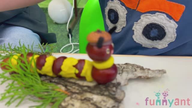 Творческая поделка из каштанов и березовой коры "Гусеница" Funny Ant Malahovka