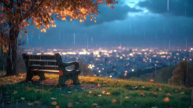 Спокойная атмосфера, разбавленная звуками дождя и отдалёнными городскими звуками.