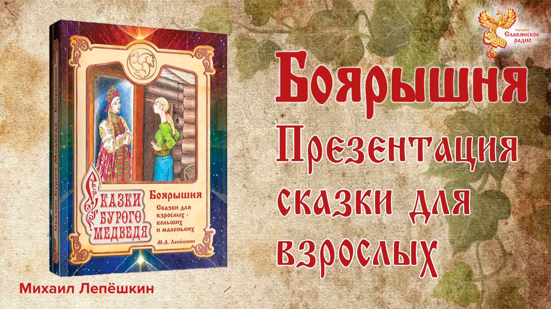 Михаил Лепёшкин, Алексей Щербаков. Хорошая новость для тех, кто ждал пятую книгу Сказок Бурого Медведя – «Боярышня»! Это сказка о Роде, о корнях и о том, как они влияют на нашу жизнь. О знаниях, которые приходят в наше время из глубины веков. О перерождении, о свободе и воле. О проблемах в семьях и отношениях. О мужском и женском. Много раз Михаил выступал на Народном Славянском Радио, освещая разные темы, и также представлял свою новую книгу со сказками. И вот, наконец, пришла из типографии «Боярышня». Это пятая книга Сказок Бурого Медведя, которая презентуется на встрече со слушателями «Народного Славянского Радио». Что вы узнаете о книге «Боярышня»: как она задумывалась, создавалась, и при чём тут гора Алтайка, почему от задумки до издания прошло 12 лет, как люди, которым читал отрывки ждали и требовали её выхода, и мы с вами тоже почитаем отрывки из неё, в чём были трудности с сюжетом, почему эта сказка не вошла в четвёртый том, почему она разбухла настолько, что заняла всю книгу и придётся писать продолжение, хотя раньше я этого не делал, чем она выбивается из предыдущих, и прочие интересные моменты, связанные с её созданием. Ссылка на группу в ВК, где можно купить сказки Бурого Медведя https://vk.com/skazbum Ссылка на ТГ канал «Сказки Бурого Медведя» https://t.me/+-UwsCXZ7_EEyMWRi Ссылка на чат в ТГ «Чай-беседы и сказки с Михаилом Лепёшкиным» https://t.me/+xE4oaHSpeuc4Mzky Быть ДОБРУ! #боярышня #михаиллепешкин #книга #сказки #литература #сказкибурогомедведя ---------------------------------------- ПОДДЕРЖАТЬ РАДИО https://slavradio.org/page/charity/ ---------------------------------------- «Народное Славянское радио» – это просветительский проект, созданный для изучения родной культуры. У нас нет инвесторов и рекламы. Мы существуем исключительно на добровольном вкладе слушателей. Любая сумма - для нас помощь! ---------------------------------------- МЫ В ИНТЕРНЕТЕ: http://slavradio.org https://plvideo.ru/@slavradio/ https://vk.com/slavradio_org https://ok.ru/slavradio https://t.me/SlavRadio_org https://zen.yandex.ru/slavradio_org https://bastyon.com/slavradio https://boosty.to/slavradio https://rutube.ru/channel/23938023/ https://youtube.com/slavradio ---------------------------------------- Сделаем вместе Мир лучше! ----------------------------------------