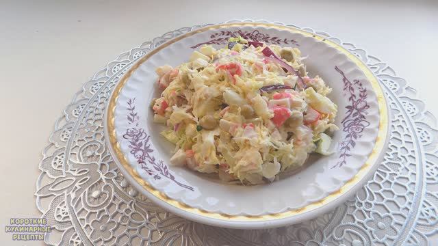 Салат из крабовых палочек с капустой и зеленым горошком