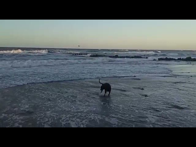 Балтика . Декабрь. Гера "шлем" в проруби ищет.....