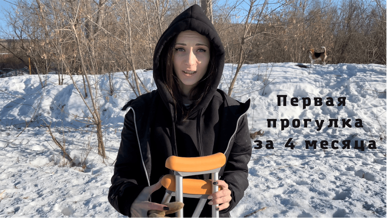 В ноябре я сломала шейку бедра и после операции я должна ходить только на костылях. Погода радует, врач разрешил немного вставать на ногу и я наконец вышла погулять со своей собакой) Не всё, конечно так, как хотелось бы, но даже такие прогулки меня радуют)