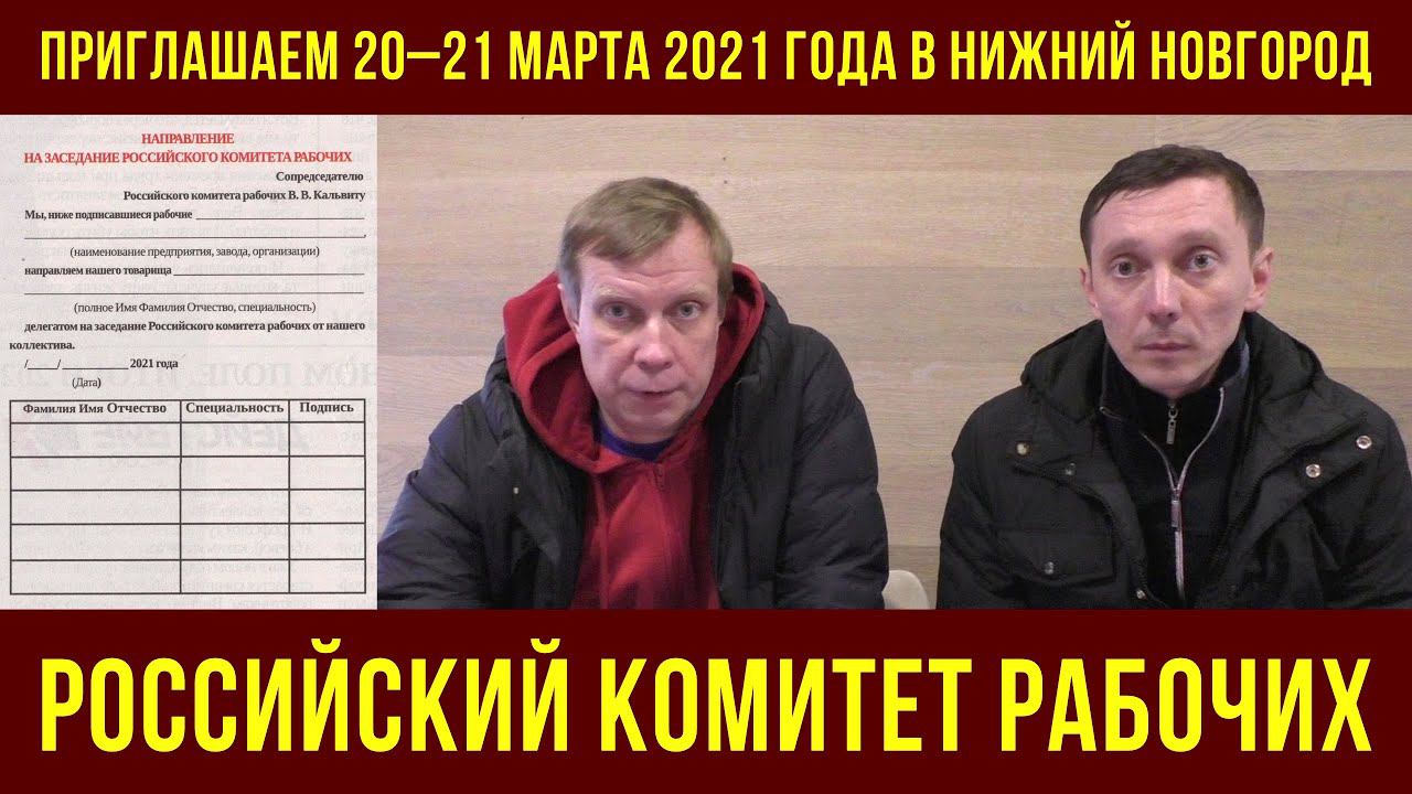 Приглашаем на Российский комитет рабочих 20–21 марта 2021 г. в Нижнем Новгороде. Д.Шилов, А.Кугейко.