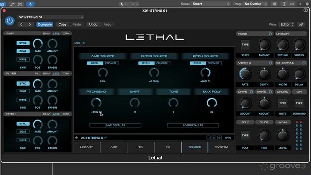📁 Groove3 Lethal Synth Explained 🎬 10. Source Section Next up, we focus on hands-on control of our patches using mod wheel or aftertouch to introduce LFO modulation of either amp, filter or pitch. Timecodes: 00:00 - Introduction 00:50 - Modulation & LFO 01:34 - Additional Settings 02:15 - Working with MIDI 03:03 - Conclusion Playlist: https://rutube.ru/plst/900000 #LethalAudio | #LethalSynth | #Groove3