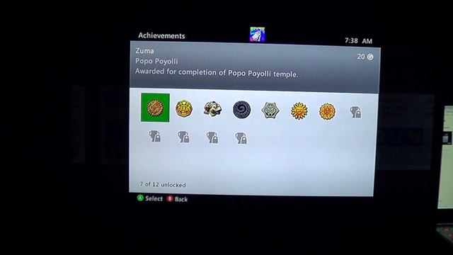 Update on The Achievements I Earned on The Xbox 360: 1: Bejeweled 3: I Completed The Achievement List after unlocking the final Achievement 2:Sonic's Ultimate Genesis Collection: I Have earned 3 Achievements as i earned the Achievement when playing Columns Angry Birds Trilogy: i have now earned 35 Achievements after unlocking some of them Sega Superstars Tennis: I Have earned 8 Achievements as i now earned 11 Zuma: i have earned 7 of 12 Achievemnts So for Peggle: I Earned 4 achievemnts for now Luxor 2: I Have 6 of 12 Achievements. Halfway there Astropop: 2 Achievements earned so far Bejeweled 2: I Have 9 Achievements For Bejeweled 2. I Have 3 to go Zuma's Revenge!: I Have 13 of 20 Achievements earned so far Feeding Frenzy: I Have earned half of the Achievements for this game