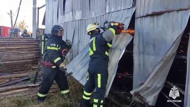 Спасатели МЧС ликвидируют пожар в двухэтажном мебельном цехе в Челябинске