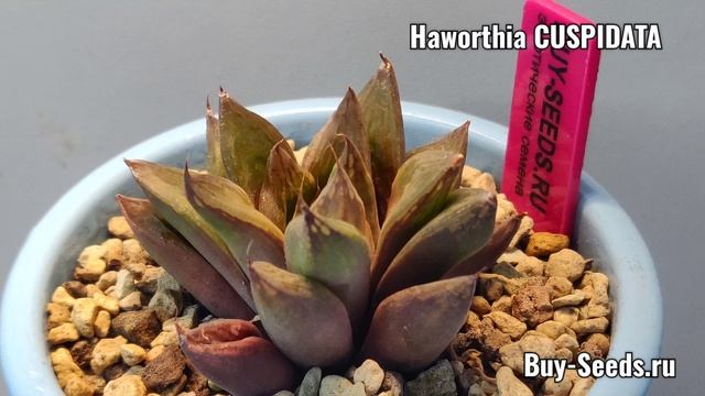Хавортия Cuspidata — это декоративное суккулентное растение из рода Хавортия. Оно имеет следующие характеристики: 1. **Форма и размер**: Хавортия Cuspidata обычно компактная, достигает высоты от 10 до 15 см, с беременными, плотными розетками. 2. **Листья**: Листья толстые, мясистые, темно-зеленого цвета, часто с характерными белыми или прозрачными, полосатыми или пятнистыми отметками. Листья имеют заостренные концы и могут быть вверх изогнуты. 3. **Цветение**: Цветет весной и летом. Цветы маленькие, трубчатые, белого или кремового цвета, образуются на длинных цветоносах. 4. **Среда обитания**: В природе предпочитает скалистые местности южной Африки, устойчив к засухе и прямым солнечным лучам, хотя лучше растет в полутени. 5. **Уход**: Не требует особого ухода, хорошо подходит для начинающих растеневодов. Рекомендуется умеренный полив и хорошая дренажная система. 6. **Размножение**: Легко размножается детками и семенами. Хавортия Cuspidata популярна среди коллекционеров суккулентов благодаря своей компактности и интересной форме. Семена суккулентов, кактусов и экзотические растения Телеграм: https://t.me/buy_seeds_ru Сайт: https://www.buy-seeds.ru/ 🌵Buy-Seeds.ru🌵