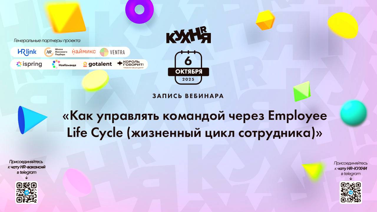Присоединяйтесь к чатам и каналам HR-КУХНИ в телеграм: - Основной чат HR-КУХНИ в телеграм - https://t.me/+tYgAH0PgPQVkOWIy - Канал HR вакансий в телеграм - https://t.me/+CMNAN2u1hjo3M2Ri - Канал HR-EVENTS в телеграм - https://t.me/hr_kitchen - Канал HR JOURNAL в телеграм - https://t.me/hrkitchenjournal Полезные ссылки: - Каталог HR решений - https://hrkitchen.ru/exhibition - График конференций, бесплатных вебинаров, а также бесплатные курсы – https://hrkitchen.ru/ - Стать спикером HR-КУХНИ - https://hrkitchen.ru/speakers - Подписаться на полезную e-mail рассылку от HR-КУХНИ (новости, гайды, чек-листы, подарки от партнеров) - https://hrkitchen.ru/subscribe Реклама. ООО "ИПИ-ЛАБ", ИНН: 7843312630 | ЕРИД: 2VfnxxztLhW