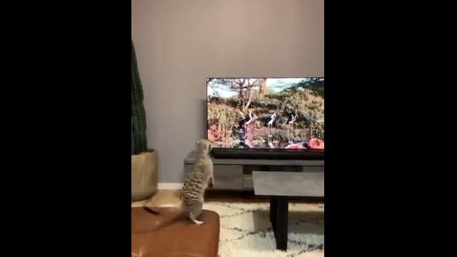 Сурикат увидел родню в телевизоре