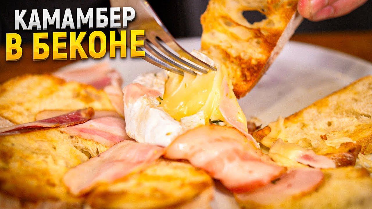Всем привет Быстрая и вкусная закуска из сыра и бекона Камамбер распаковываем и делаем надрезы Добавляем немного чеснока и темьяна Заворачиваем в бекон и отправляем в гриль Закуску из сыра и бекона лучше подавать с гренками из пшеничного хлеба Готовить на непрямом жаре 180 градусов 25-30 минут Всем приятного аппетита